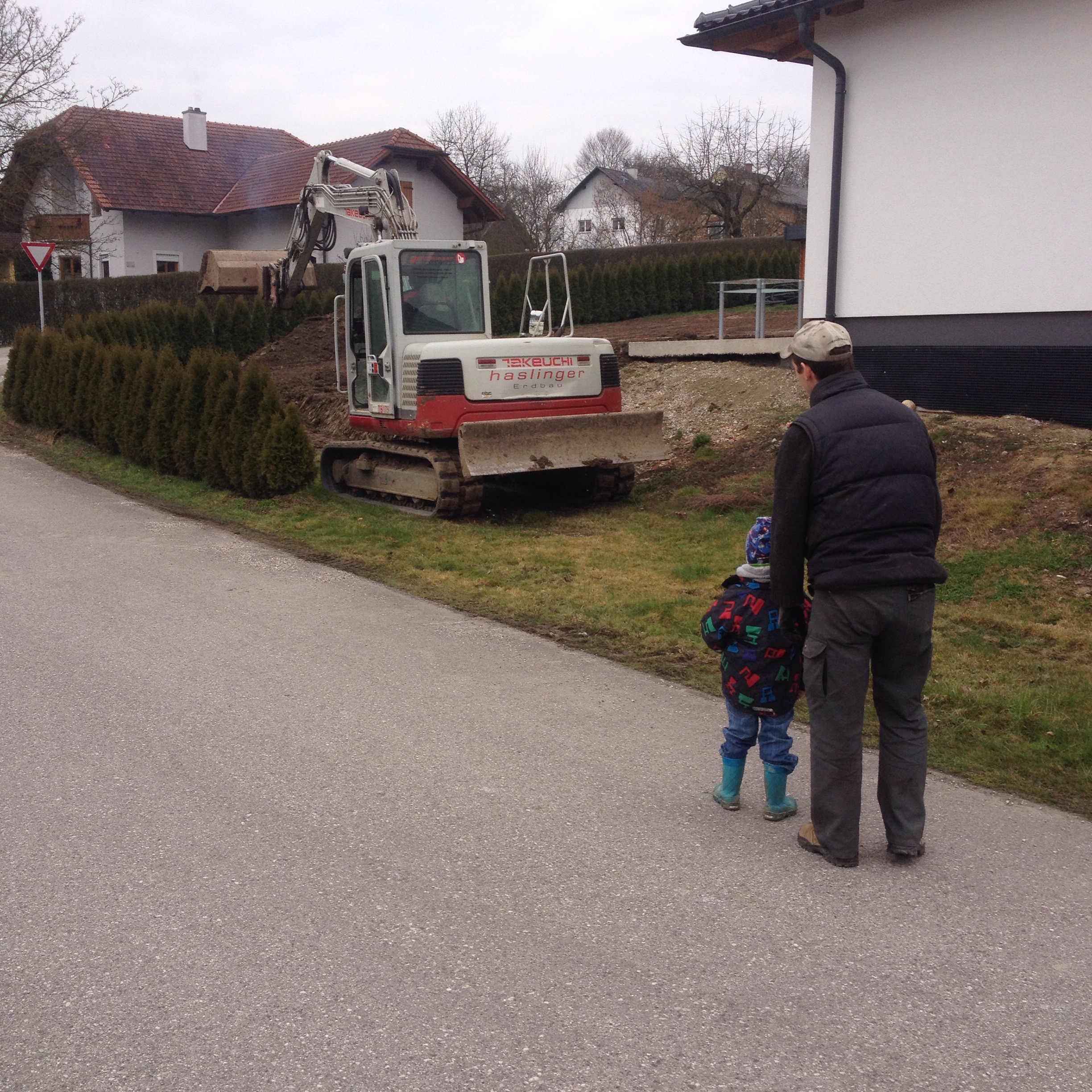 Wir schlendern zum Bagger, der ja praktischerweise grade auf der benachbarten Baustelle wohnt.