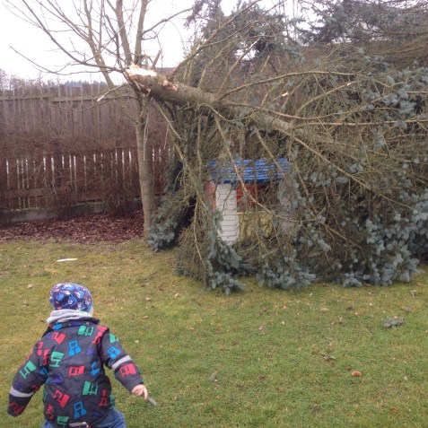 Sehr zu dessen Freude: „Schau mal Mama, mein Haus steht jetzt im Wald!“