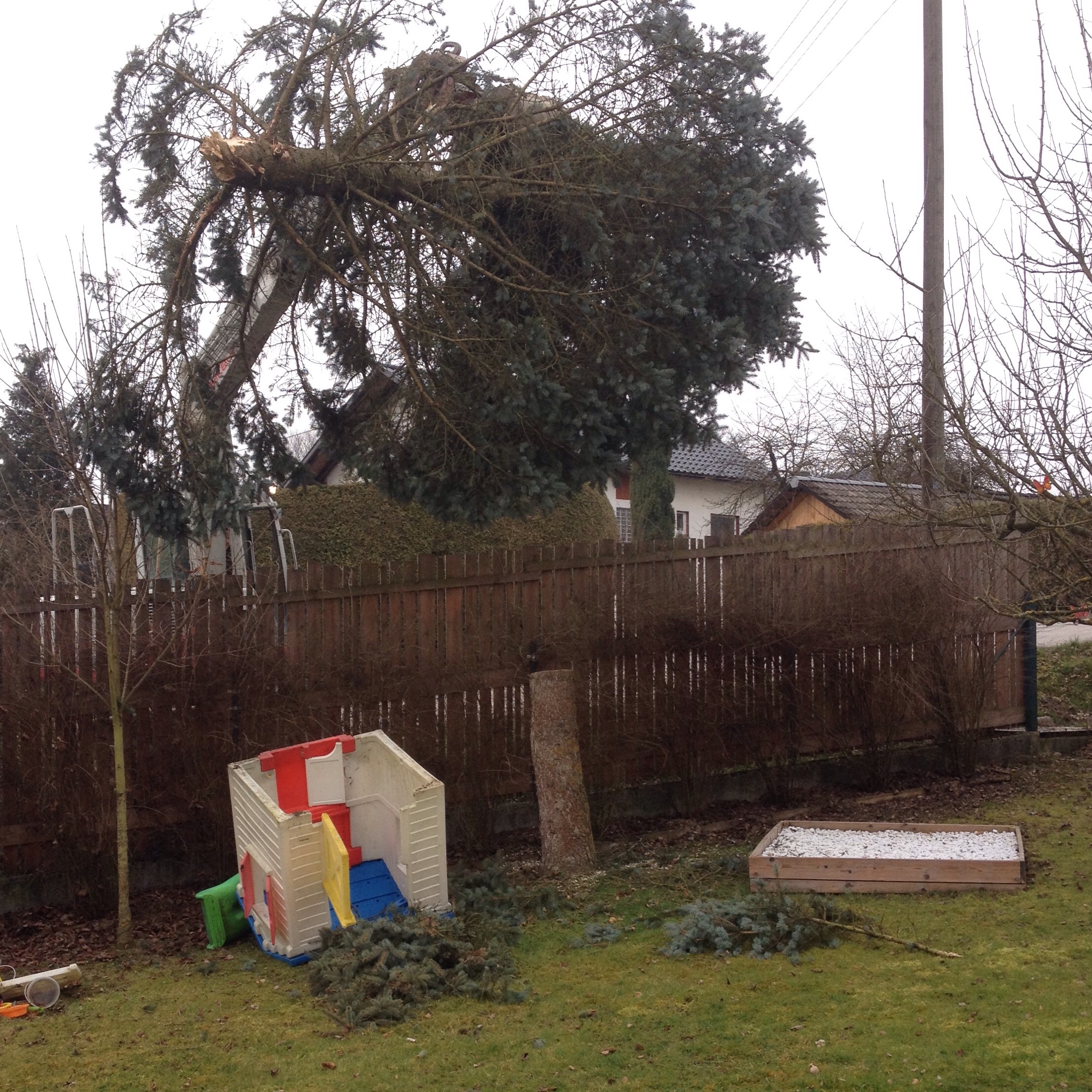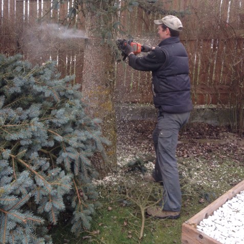 Die Fichte in unserem Garten war schon lange dem Tod geweiht… Und jetzt gings ans Eingemachte.