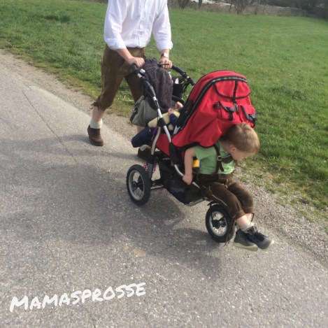 …gings heim. Der Hasenbub war zu erschöpft zum selbst gehen. Und so schob der Beste 2 Kinder nach Hause.