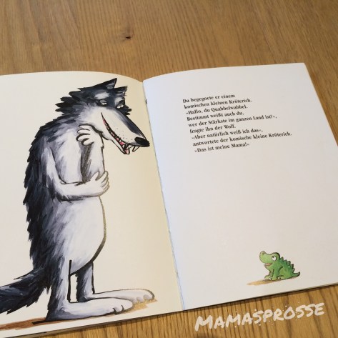 Und dann fragt der kleine Kröterich den Wolf ganz neugierig: „Und du, wer bist du?“
