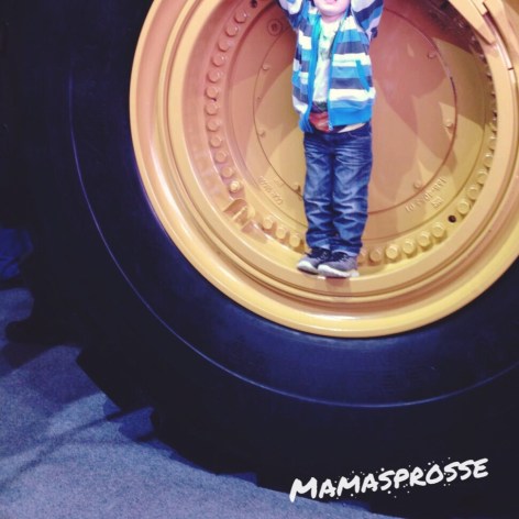 Die Männer des Hauses besuchten einen ganzen Tag Bagger, Kräne, Muldenkipper, Rüttler, … Alles was das Baustellenherz begehrt. Der Hasenbub war im Himmel. Es durfte nicht nur alles bestaunt, sondern auch angefasst und beklettert werden.