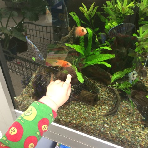 - Sobald die Babymaus ein Tier sieht, quietscht sie ihr ganz spezielles „Da ist ein Etwas, das sich bewegt und mir soooo gut gefällt“-Quietschen. Manchmal quietscht sie und ich muss mich erstmal umsehen, wo denn das Tier ist. Aber es ist sicher eines da. Katze, Ameise, Hund, Kuh, Käfer, Pferd, Vogel,… Ganz egal. Sie quietscht auch für Fische. Laut und begeistert.