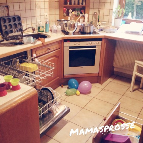 Ich stehe also den ganzen Vormittag in der Küche, mache, tue und werke… Zwischen Schüsseln, Töpfen und natürlich Luftballons. Wer kocht denn auch bitte ohne Luftballons?