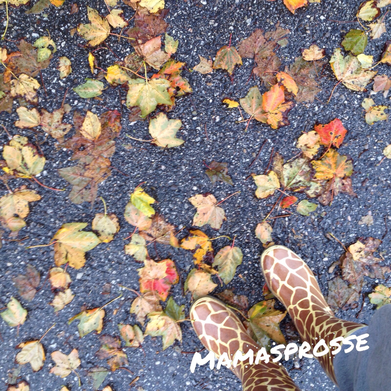 Und es hat sich gelohnt. Bunte Herbstblätter, tolle Latschen (dt.: Pfützen), reife Äpfel an den Bäumen für die Jause zwischen durch…. Nach ca. einer Stunde kommen wir nass, aber gut gelaunt zu Hause an…