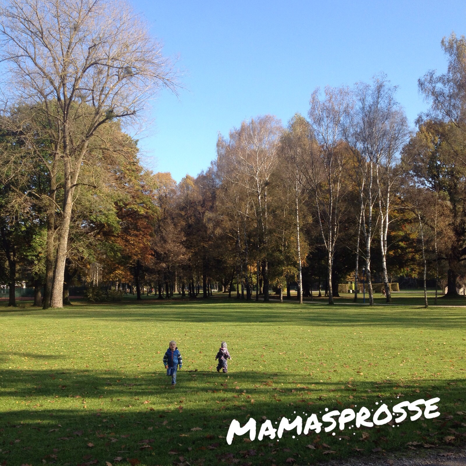 Der Himmel und die Blätter leuchten und strahlen und meine 2 Kleinen entdecken und genießen das draussen sein.